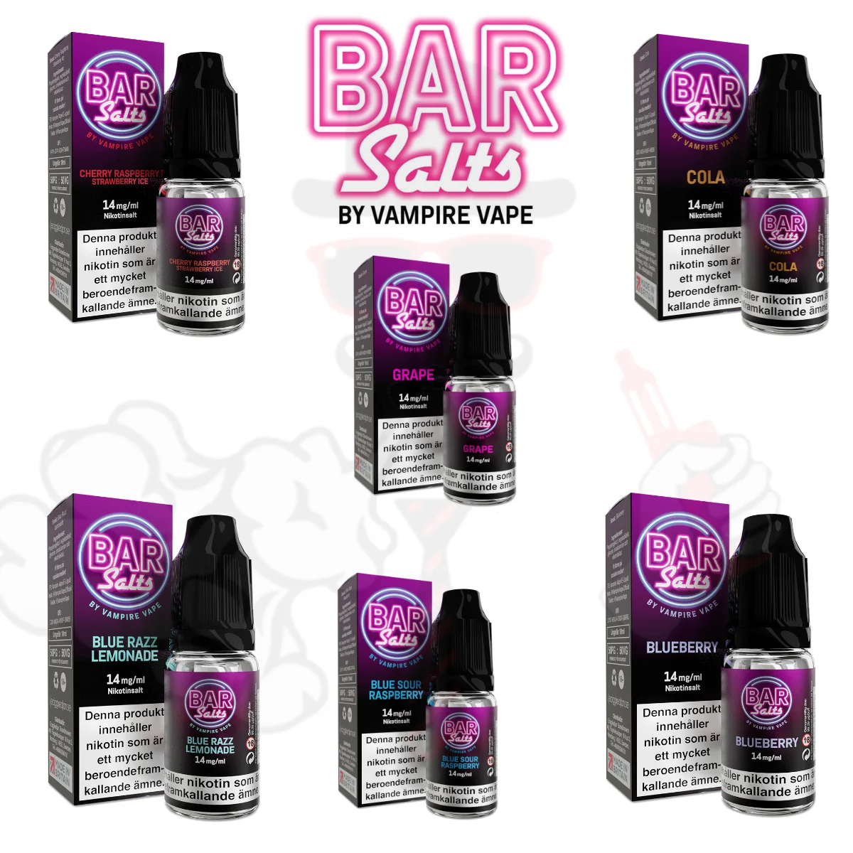 Bar Salts kommer i 12 spännande smaker som var och en erbjuder en unik smakprofil och sensation, anpassade för att tillfredsställa en mängd olika smakpreferenser.